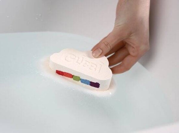 Glibbi - het ultieme plezier voor in de badkuip. Als je de Glibbi Boom met regenboogeffect in het badwater legt, begint hij te borrelen en drijft hij in het water. De witte badbom is ontworpen in de vorm van een wolk waaruit de regenboog tevoorschijn komt die het water kleurt. Alle Glibbi-producten zijn dermatologisch getest en absoluut onschadelijk. Dit is bevestigd door het onafhankelijk instituut Dermatest. Glibbi Boom is geschikt voor kinderen vanaf 3 jaar.