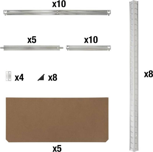 Dankzij dit open opbergrek blijft je garage, werkplek en eender welke andere ruimte netjes en behoud je een duidelijk overzicht van je spullen. Je kan het volledig aan jouw wensen en eisen aanpassen. Je kiest namelijk zelf op welke hoogte je de legplanken plaatst en of je graag één hoog opbergrek hebt of liever twee lage opbergrekken.