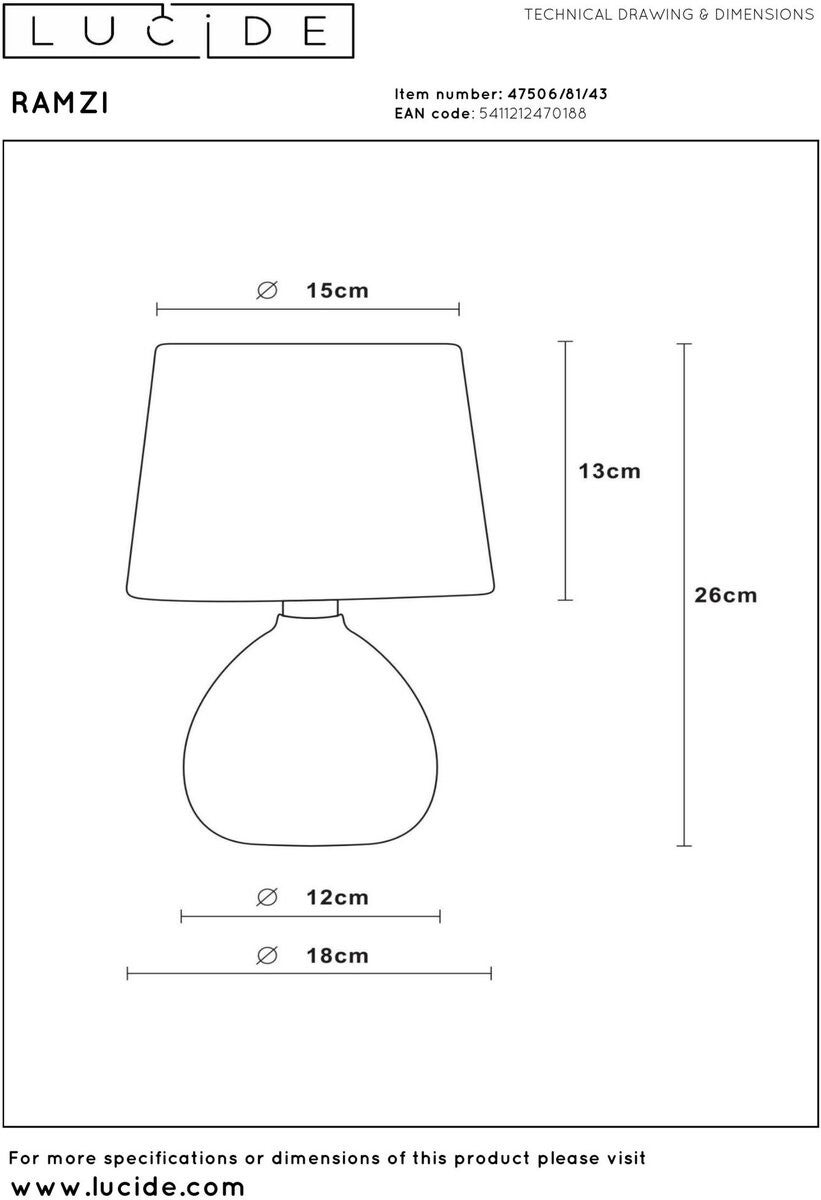 Rustgevende tinten, natuurlijke materialen en een elegante vorm. Je vindt ze allemaal in deze compacte tafellamp. Met een hoogte van 26 centimeter is Ramzi, zo heet deze lamp, geschikt voor elke tafel. Als sfeerverliching bij de tv of als leeslamp voor je boek 's avonds: het licht wordt gelijkmatig naar boven en onder verspreid. Je geniet van een landelijk ontwerp in hoogwaardige keramiek. Met een schakelaar in het snoer schakel je Ramzi aan en uit. Verkrijgbaar in verschillende kleuren.
