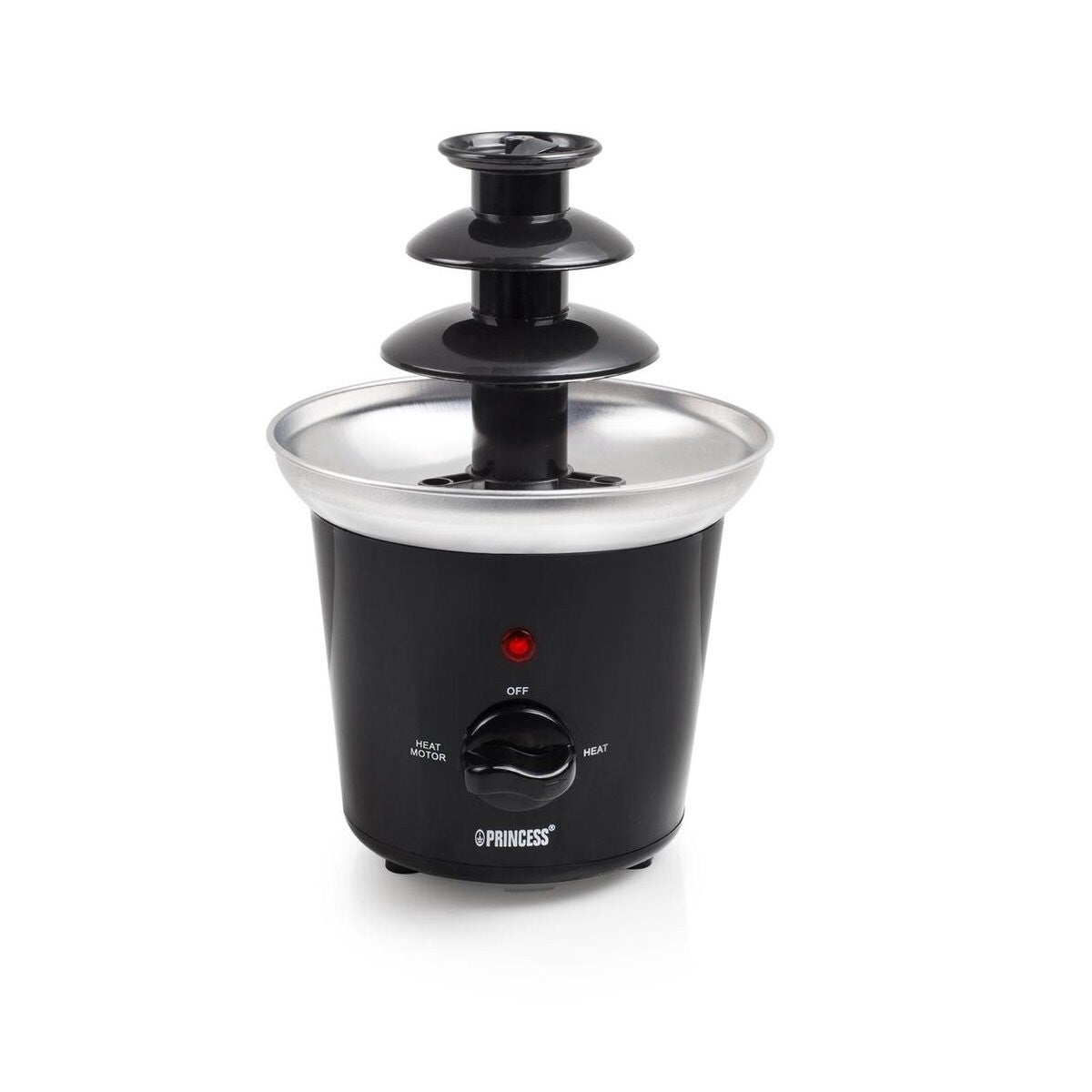 Met de Princess Chocoladefontein geniet je in een mum van tijd van heerlijke gesmolten chocolade, ideaal voor een kinderfeestje of als tussendoortje. De chocolade dient vooraf gesmolten te worden en pompt deze vervolgens omhoog zodat hij over de drie lagen naar beneden stroomt. Doop er stukjes fruit, koek of marshmallows in en geniet van heerlijke zoete lekkernijen.