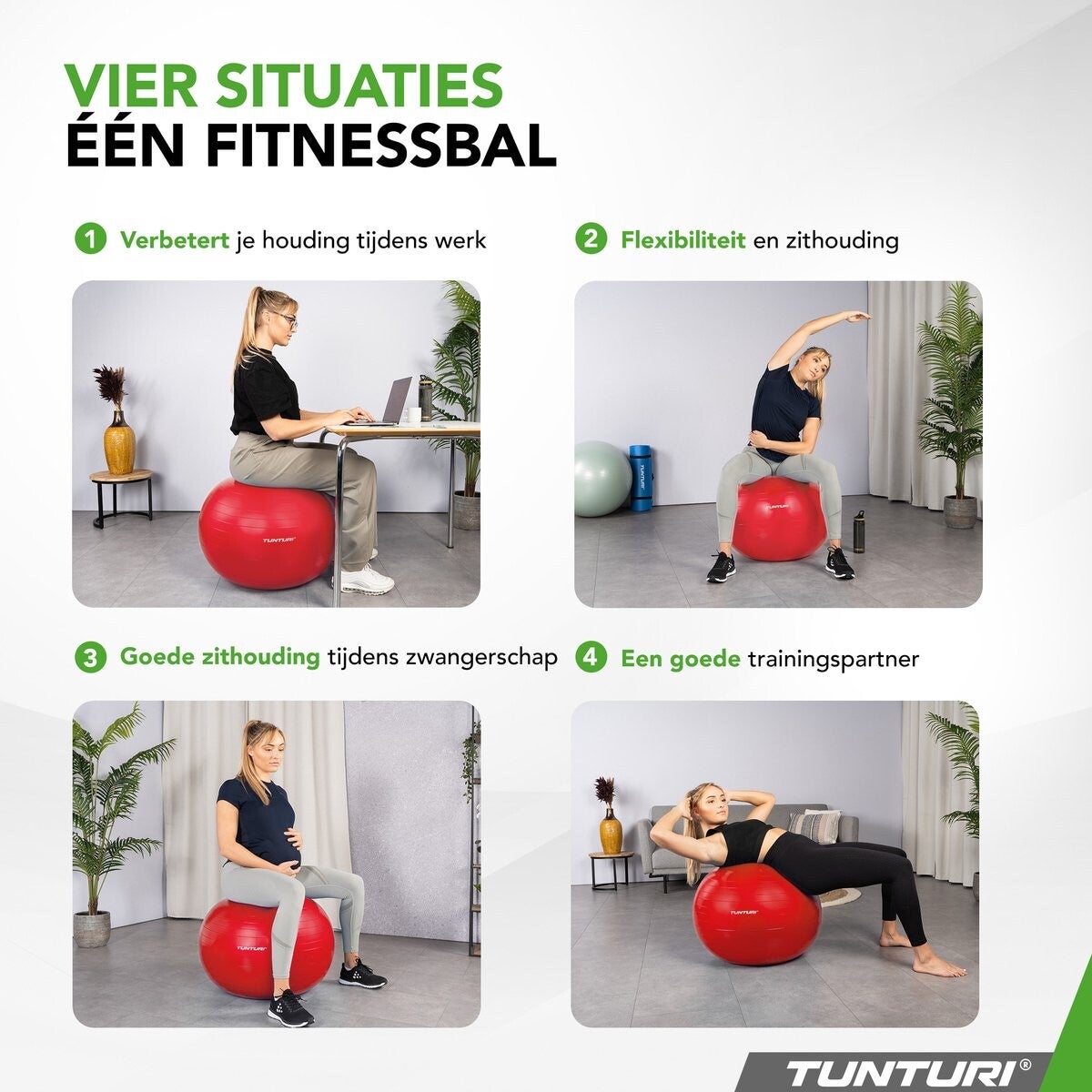 Verbeter je workouts, optimaliseer je zithouding, en ontdek het comfort van de Tunturi fitness bal. Kies voor veelzijdigheid, duurzaamheid, en stijl in één.