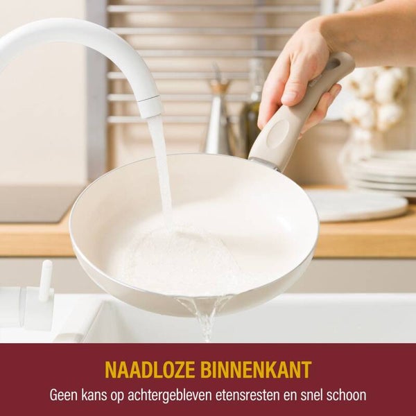 - Keramische antiaanbaklaag: crèmekleurig
