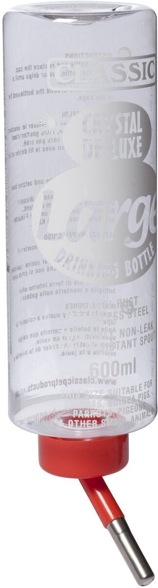 Deze drinkfles vul je eenvoudig iedere dag opnieuw met schoon water.De fles is gemaakt van kunststof (pp) en de nippelhouder van een zeer sterk kunststof. de rvs nippel die hierin gedraaid is heeft een zeer lange levensduur. Lekkage kan eigenlijk niet voorkomen maar mocht dit toch gebeuren dan is het in 99% van alle gevallen vervuiling van de nippel. Schoonmaken met bijv. azijn werkt dan perfect.