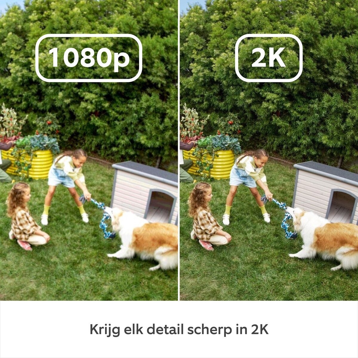 Beveilig je buitenruimtes met de beste beeldkwaliteit van Ring tot nu toe. Waar je de camera ook plaatst, je krijgt schitterende 2K-dekking van je oprit, terras en alles daartussenin.