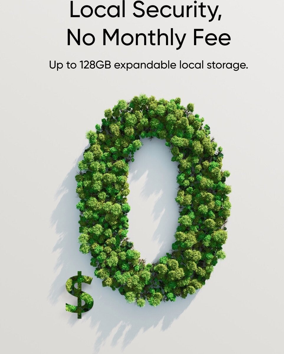 Houd je beelden veilig en privé met lokale opslag. Sla opnames op een microSD-kaart met een capaciteit tot 128 GB op, zodat je geen maandelijkse abonnementskosten hoeft te betalen en je gegevens onder jouw controle blijven