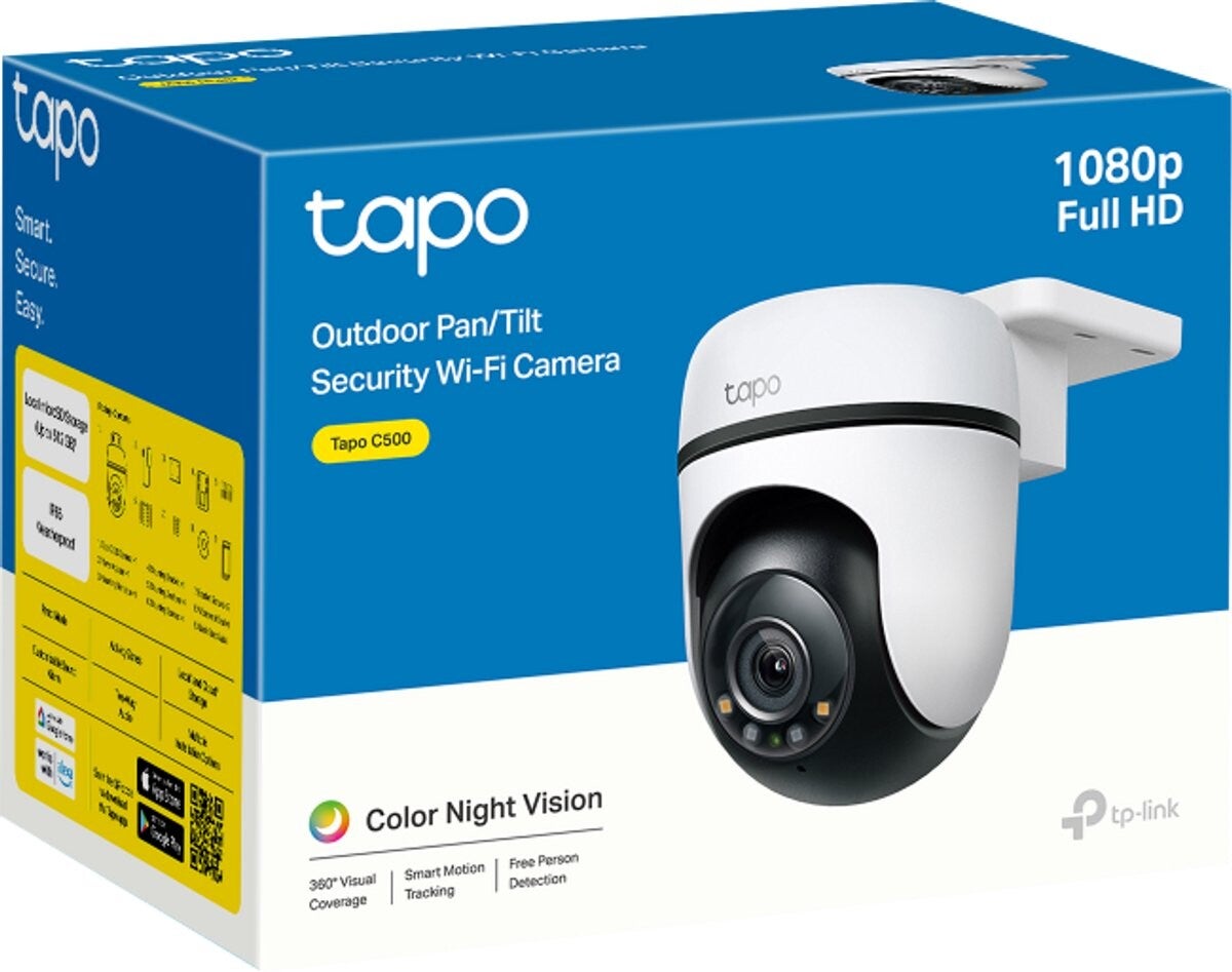 Dit is de TP-Link Tapo C500 - Outdoor Pan/Tilt Security Wi-Fi Camera. De Tapo C500 legt slim en duidelijk alles rondom vast en beschermt uw gezin dag en nacht. 1080p Full HD Live View-Realiseert heldere en scherpe beelden met meer details.Personendetectie en motion tracking-Smart AI identificeert een persoon tijdens het volgen van beweging met hoge snelheid en waarschuwt gebruikers indien nodig.360° visuele dekking - 360° horizontaal en 130° verticaal bereik om elke hoek te dekken.Nachtzicht (tot 98 ft) - Garandeert uw veiligheid door een duidelijke visuele afstand tot 98 ft, zelfs in totale duisternis.IP65 Weerbestendig - Biedt uitstekende waterdichte en stofdichte prestaties voor buitenscenario's.Meerdere installatie opties - Gebruik de montage schroeven, sjabloon en lussen‡ om te installeren op elke muur, plafond of paal voor de perfecte weergave-waar u maar wilt.Flexibele opslagmogelijkheden - Sla opgenomen video's op een geïnstalleerde microSD-kaart (tot 512 GB)†, of gebruik Tapo Care** cloud-opslagservice.Aanpasbaar geluidsalarm - neem uw aangepaste audio op als alarm om uw gebruik uit te breiden.Fysieke privacy modus - Behoudt uw privacy met de lens fysiek geblokkeerd door de behuizing.Tweerichtingsaudio - Maakt communicatie mogelijk via een ingebouwde microfoon en luidspreker. SD-kaart niet inbegrepen.