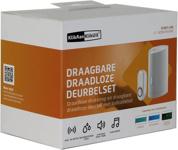 Met deze handige draadloze deurbel heb je een draadloze verbinding en heb je geen stopcontact nodig. Het enige wat je nog nodig hebt zijn 2 AA-batterijen en je gasten hoeven niet meer te kloppen. Ook is dit systeem makkelijk uit te breiden met de producten van KlikAanKlikUit. Heb je meer deurbellen? Geef elke bel dan een ander melodie en je weet meteen naar welke deur je moet gaan.