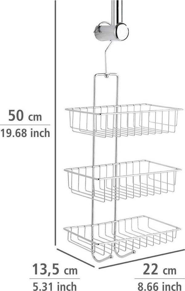 De afmetingen van deze douchecaddy zijn (B x H x D): 22 x 50 x 13,5 cm