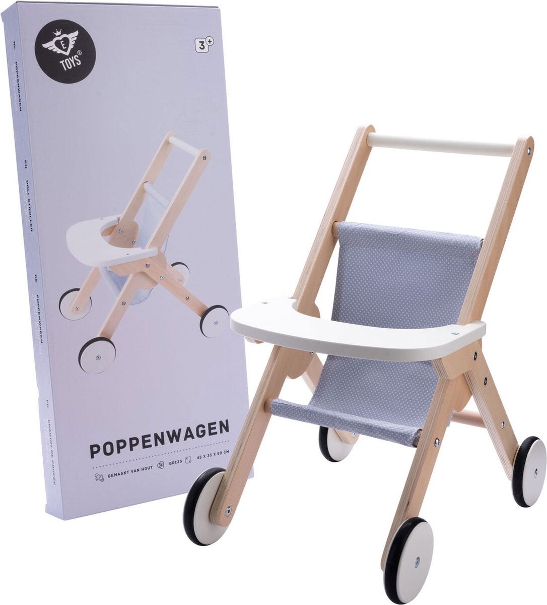 Poppenwandelwagen gemaakt van hout grijs/ blauw