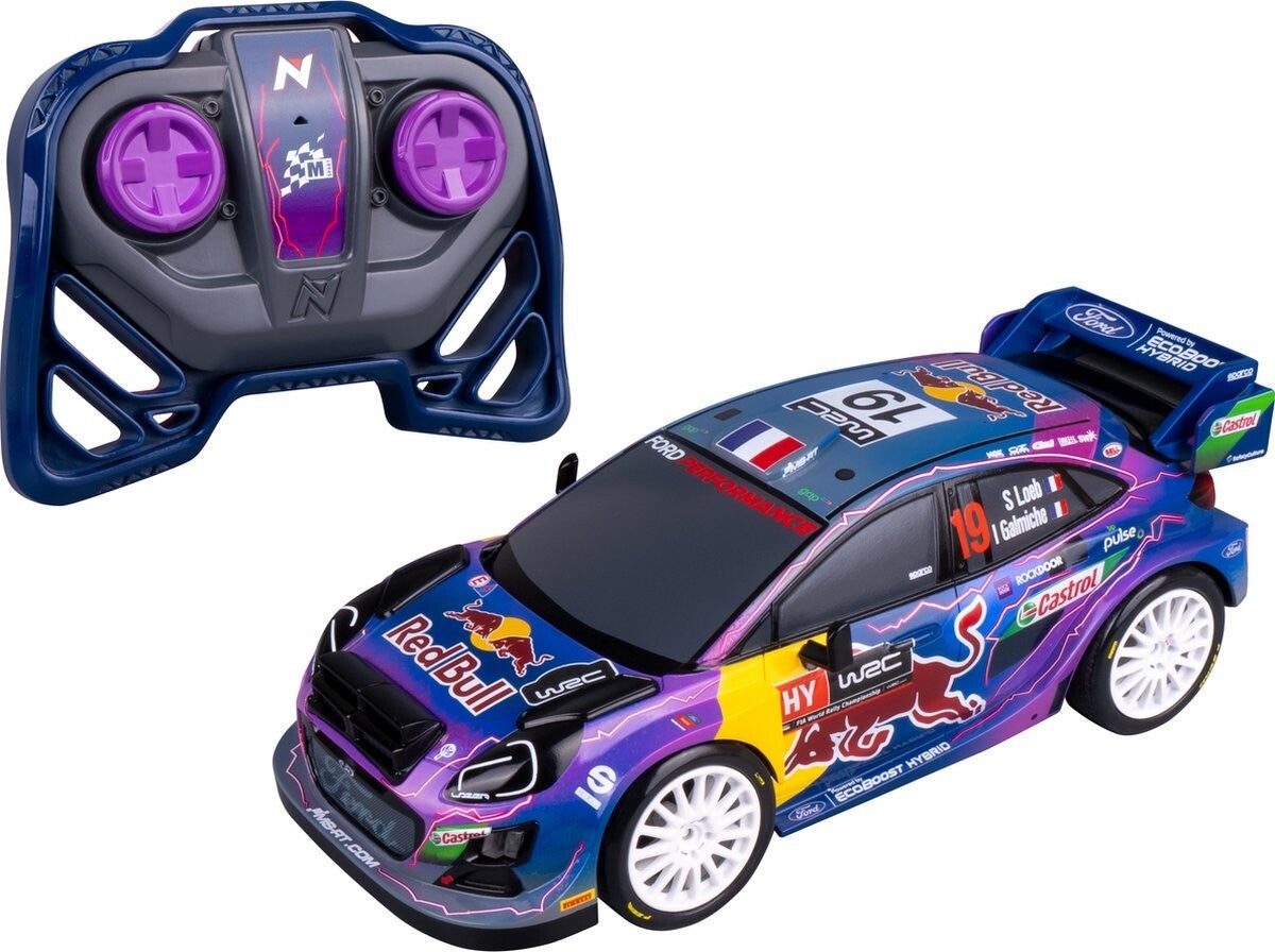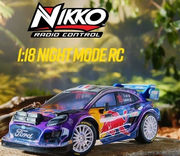 Nikko RC Auto Rally - Night Mode M-Sport Ford Puma #19 – RC Voertuig 29 cm – LED Verlichting – Vanaf 6 jaar – Blauw/Paars 1:18