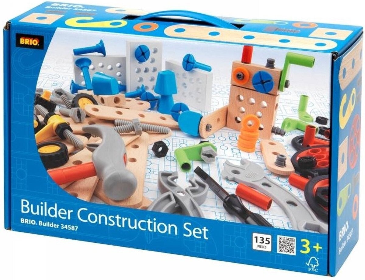 Ontwerp en bouw je eigen constructies! Met deze onderdelen en gereedschappen kan je bijna alles bouwen wat je wilt. Een leuke manier om de hand/oog coördinatie te oefenen en creatief bezig te zijn met bouwen. 135-delige BRIO Builder set om de leukste dingen mee te bouwen. Al het hout in deze set is FSC gecertificeerd.
