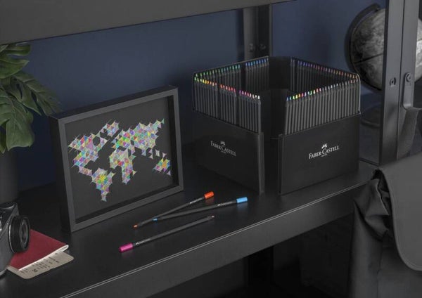 Faber-Castell Black Edition: 100 kleurpotloden met ergonomische driehoekige grip, stevige verlijming en soepele kleurverdeling. Voor creatief plezier!