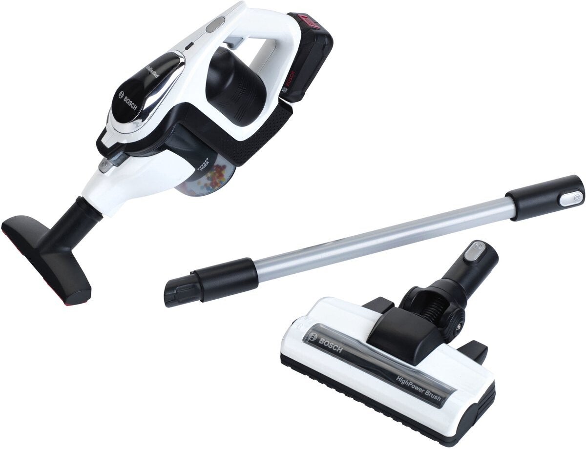 "Met de Bosch Unlimited-stofzuiger komt de toekomst naar de kinderkamer. Theo Klein heeft de Unlimited-stofzuiger kindvriendelijk nagebouwd en voorzien van functies die die van echte stofzuigers zeer goed imiteren. Zo zuigt de speelgoedstofzuiger de meegeleverde balletjes moeiteloos op. In de stofbak dwarrelen ze dankzij een kleine batterijgevoede motor vrolijk rond. De vloerzuigmond rolt soepel over de vloer op lichtlopende wieltjes aan de onderkant, is draaibaar en kan worden verwijderd om plaats te maken voor de handzuigmond die bij de set is inbegrepen. Na het werk kan de stofbak worden verwijderd, kunnen de balletjes weer over de vloer worden verspreid en meteen weer worden opgezogen. Dat maakt de kleine huishoudelijke helpers niet alleen blij, maar leert ze ook veel.