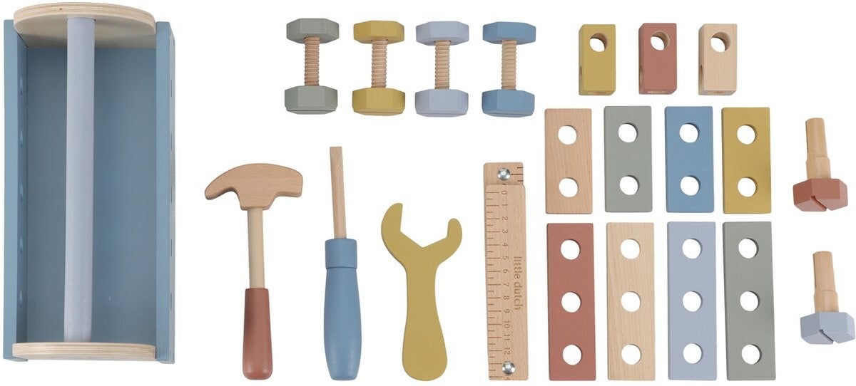 De Little Dutch Gereedschapskist – Hout is een echte must-have voor kleine timmermannen en timmervrouwen in de dop! Met deze stevige houten kist vol gereedschap kan je kindje bouwen, repareren en timmeren alsof het een echte klusser is. Een ideaal speelgoed dat fantasierijk rollenspel stimuleert en kinderen spelenderwijs laat kennismaken met klussen.