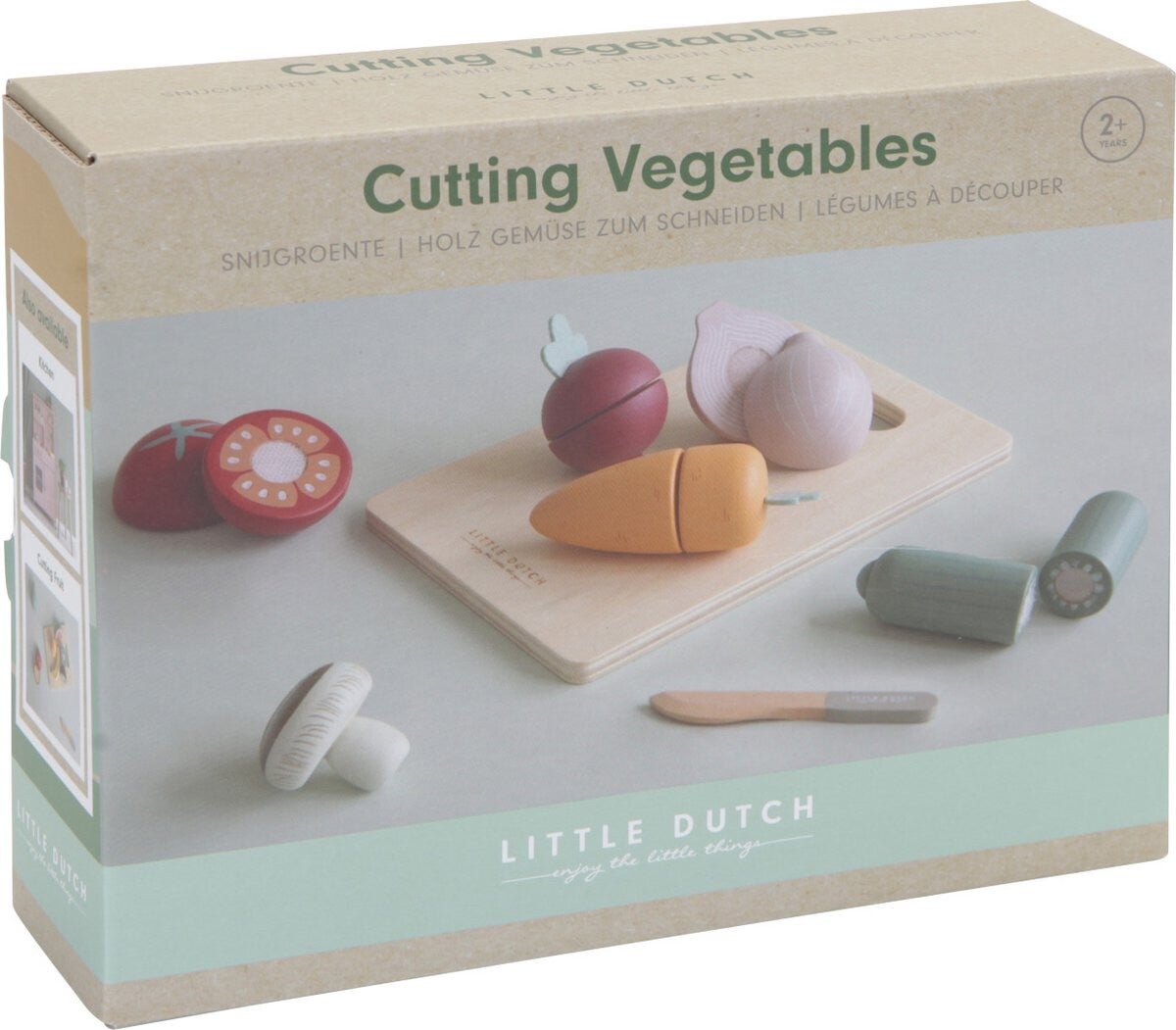 Eet elke dag groente! Deze set van houten groente is een leuke manier om rollenspellen bij je kindje te stimuleren. Samen koken is zo gezellig! Hak de groenten op de snijplank doormidden met het houten mesje en word een top chef. De inbegrepen groenten zijn: wortel, komkommer, tomaat, ui, rode biet en een champignon. Alles kan in tweeën gesneden worden en is eenvoudig weer op elkaar te plakken door het klittenband.