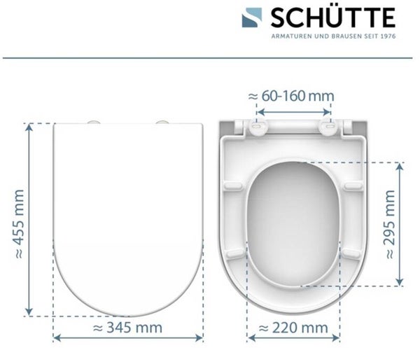 SCHÜTTE WC-Bril 82910 D-SHAPE WHITE - Duroplast - D-vorm - Soft Close - Afklikbaar - RVS-Scharnieren - Belastbaar tot 175 kg - Gelakt - Wit