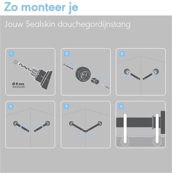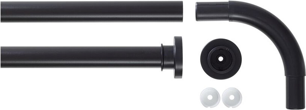 Een douchegordijn ophangen was nog nooit zo makkelijk. Deze praktische douchegordijnstangen set van Sealskin bevat alle benodigde onderdelen voor het ophangen van een douchegordijn. De set bestaat uit 2 stangen van aluminium en 1 koppelstuk. Dankzij het koppelstuk creëer je met gemak een L-vormige opstelling. We raden je aan om gebruik te maken van de optionele plafondsteun (EAN: 8720605753287) voor meer stevigheid. De uitvoering in het zwart past perfect bij de moderne badkamer.