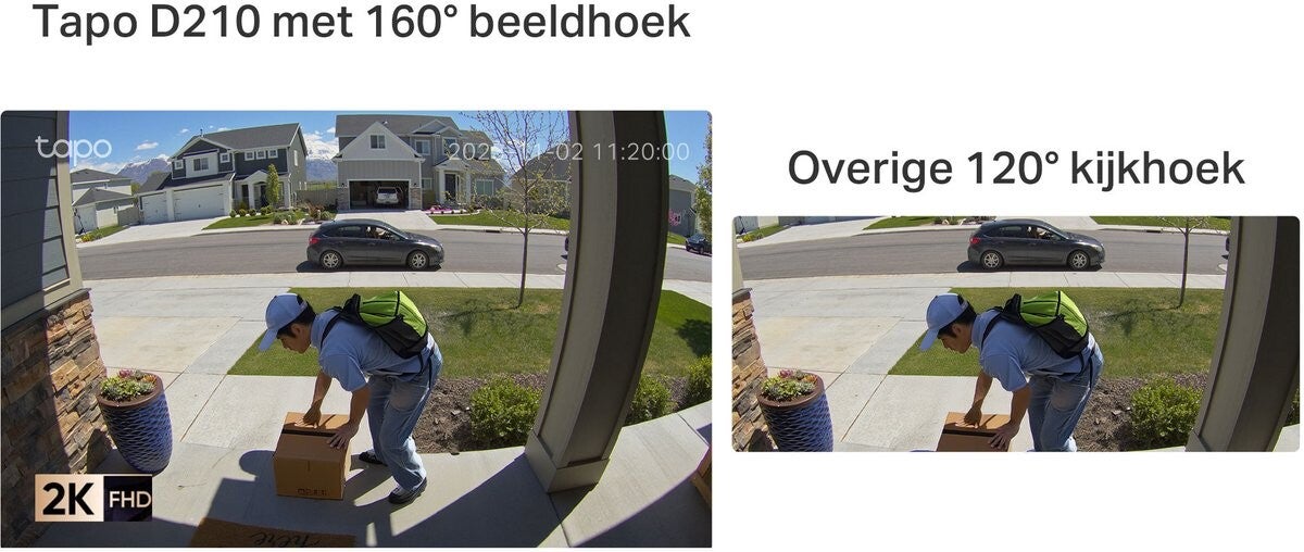 De TP-Link Tapo D210 slimme deurbel met gong/chime is een camera/video deurbel met een beeldhelderheid in 2K 3MP (2304x1296px) . Hiermee biedt deze draadloze deurbel meer detail en scherpte dan een standaard 2K videodeurbel. Dankzij de meegeleverde chime hoor je de deurbel ook binnenhuis, terwijl je via de Tapo-app meldingen ontvangt op je smartphone.