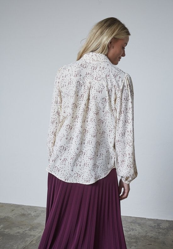 Blouse met lange mouwen, een kraag en een knoopsluiting. De blouse heeft een print met kleine hartjes.