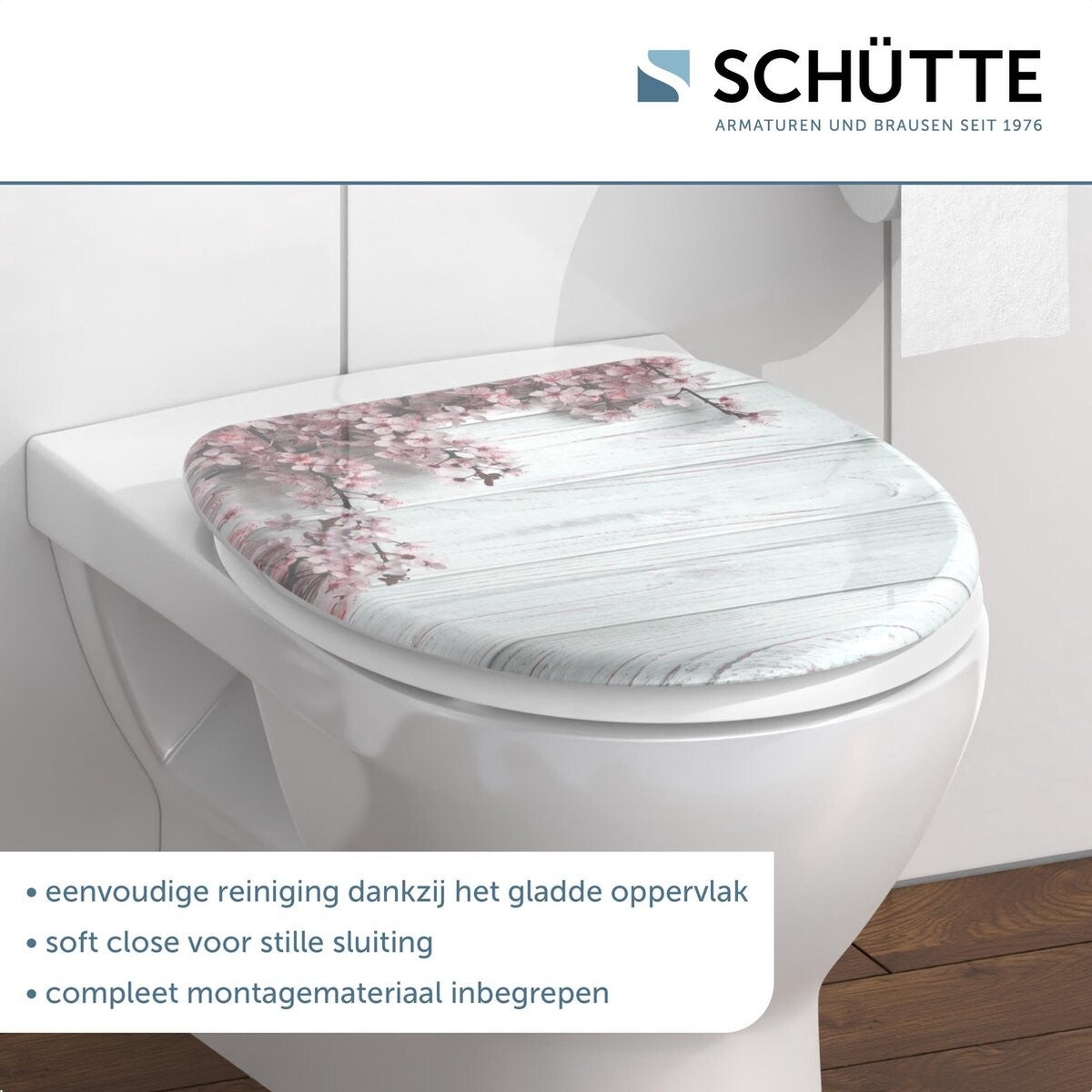 SCHÜTTE WC-Bril 82197 FLOWERS & WOOD - Duroplast - Soft Close - Verchroomde Scharnieren - Decor - 1-zijdige Print