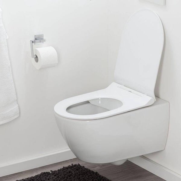 • toiletbril in een D-vorm. Design dat perfect aansluit op hangtoiletten of een toilet met rechte zijwanden
