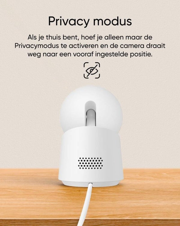 - Privacy modus Als je thuis bent, hoef je alleen maar de Privacymodus te activeren en de camera draait weg naar een vooraf ingestelde positie.