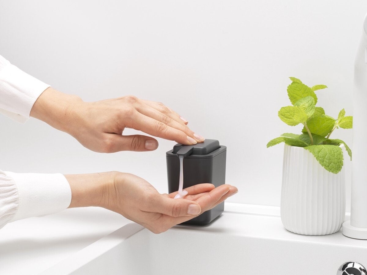 De Brabantia SinkSide Zeepdispenser is niet alleen schoon, maar ook een schoonheid van zijn grote navulopening tot en met zijn antislipbodem. Er past 200 ml handzeep of afwasmiddel in en hij past perfect in het Brabantia Aanrechtbakje. Een mooi voorbeeld van hands-on design!