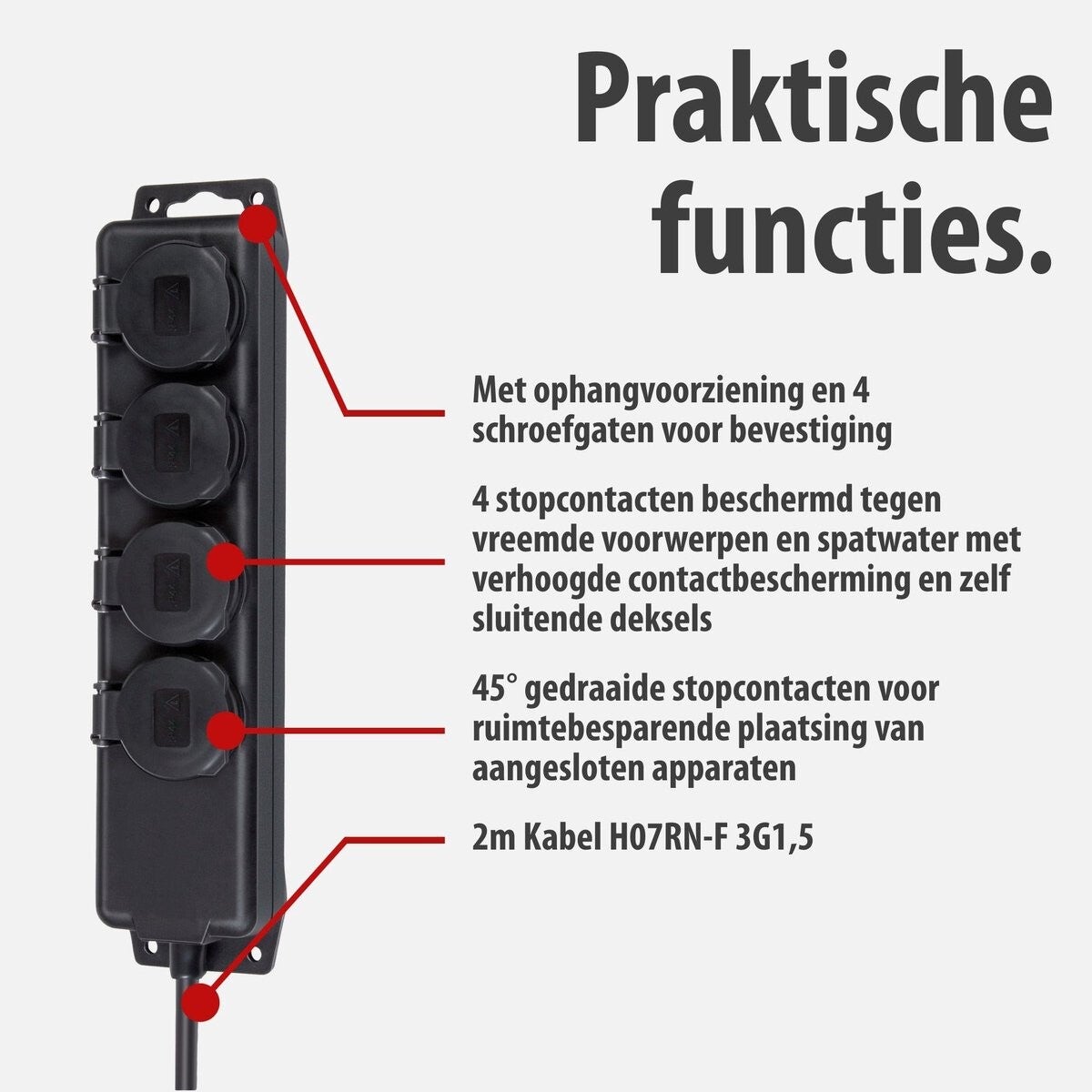 Brennenstuhl buitenstekkerdoos IP44 4-voudig (stekkerdoos voor gebruik op de bouwplaats en permanent buitengebruik, 2m kabel)
