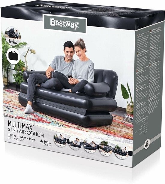 Bestway 5-in-1 Multifunctionele Opblaasbank – 2 Persoons – Draagvermogen: 300 kg - 188 cm x 152 cm x 64 cm
