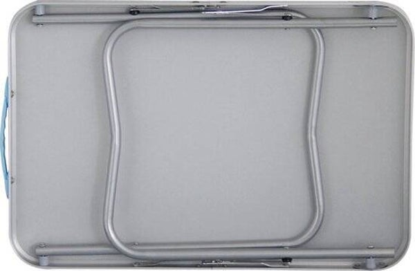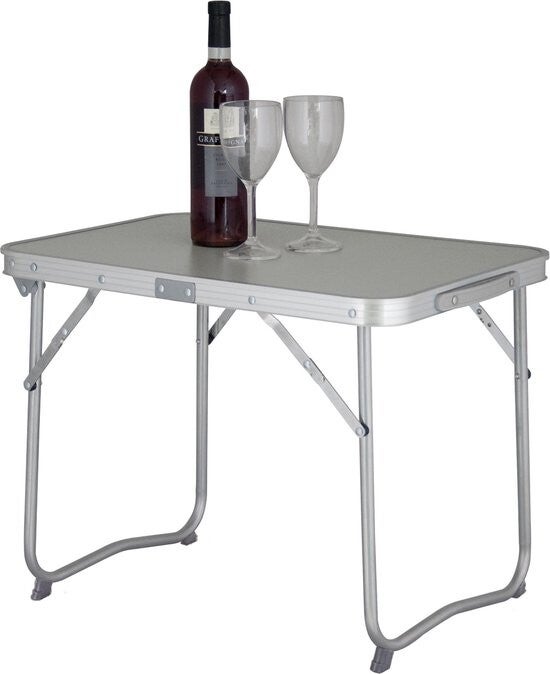 Tafel is eenvoudig in gebruik, de poten zijn inklapbaar onder de tafel en de tafel is voorzien van een draaggrip, waardoor de tafel makkelijk is mee te nemen.