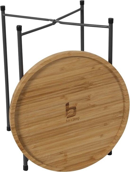Een compacte en trendy bijzettafel uit de Urban Outdoor collectie. De stalen poten zijn eenvoudig in te klappen waardoor dit tafeltje compact is mee te nemen. Het bamboe blad van deze tafel is afneembaar en hierdoor ook te gebruiken als dienblad. Niet alleen heel praktisch maar ook decoratief voor binnen en buiten, thuis of op reis.