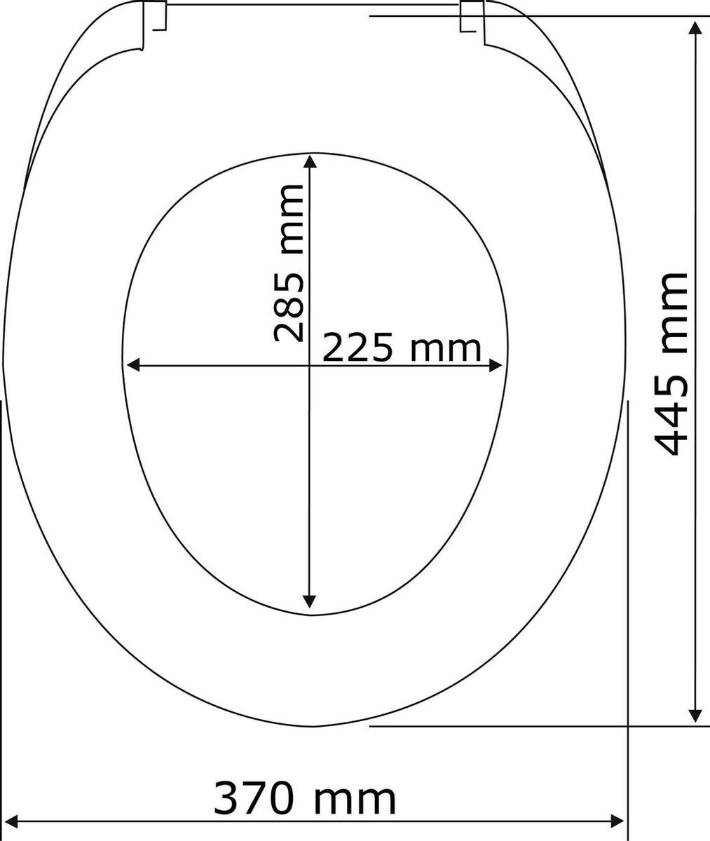 De afmetingen van de wc bril (B x D) zijn als volgt, zie ook de afbeeldingen: