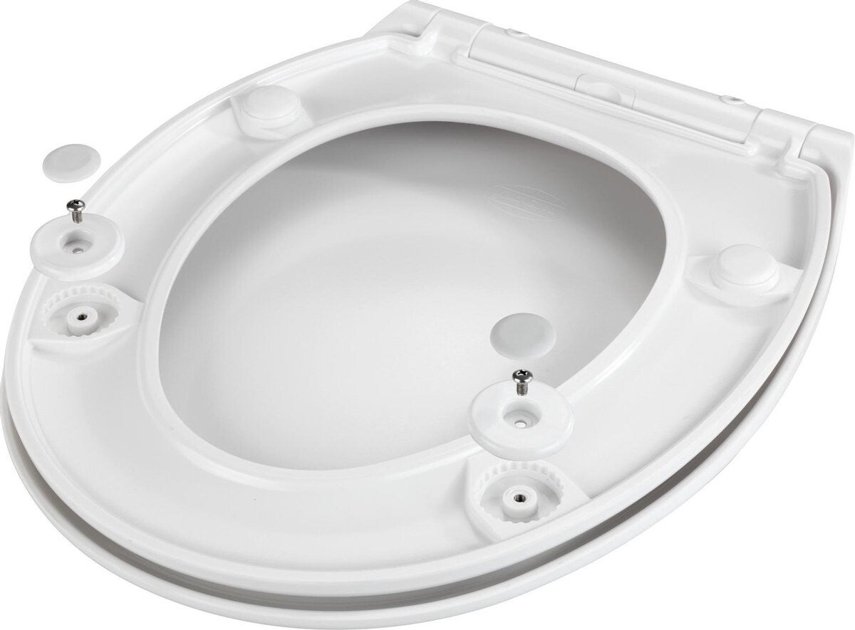 De stevige toiletbril heeft geen scherpe randen, weegt 3 kg en is gemaakt van antibacterieel Duroplast, dat gemakkelijk te reinigen is en bestand is tegen een belasting tot 350 kg.