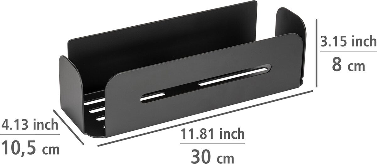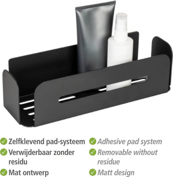 WENKO Turbo-Loc Doucherek Bivio zwart mat aluminium 30x10cm - Badrek - Douchemand - Bevestigen zonder boren - Zelfklevend