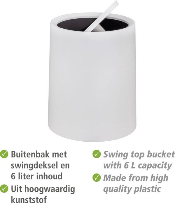 WENKO Afvalemmer Atri 6 liter in wit kunststof, met swingdeksel en binnenemmer - Prullenbak - Afvalbak - Vuilbak - Vuilnisbak - Wit