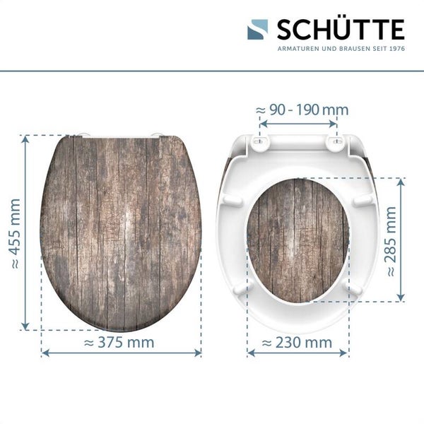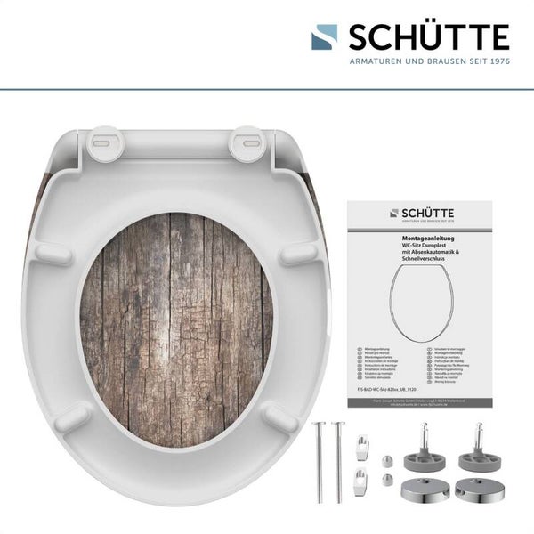 SCHÜTTE WC-Bril 82368 OLD WOOD - Duroplast - Soft Close - Afklikbaar - RVS-Scharnieren - Belastbaar tot 175 kg - Decor - 3-zijdige Print